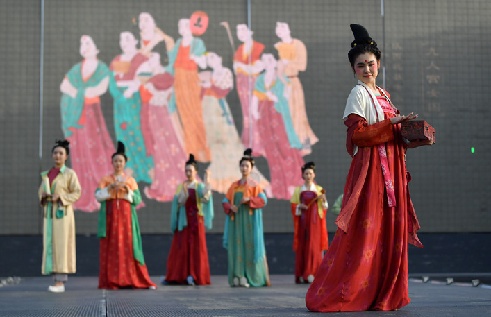 “这次走秀我们集中展示汉、唐、宋、明各色传统服饰,以华服之美回望千年文明。汉衣雍容古朴,唐装华丽多彩,宋服素雅柔和,明装精致优雅,都展现了中国民间传统文化的精髓和独特魅力,引发游人对文化自信的共鸣。”陕西服装工程学院服装表演专业老师贺京霞说。